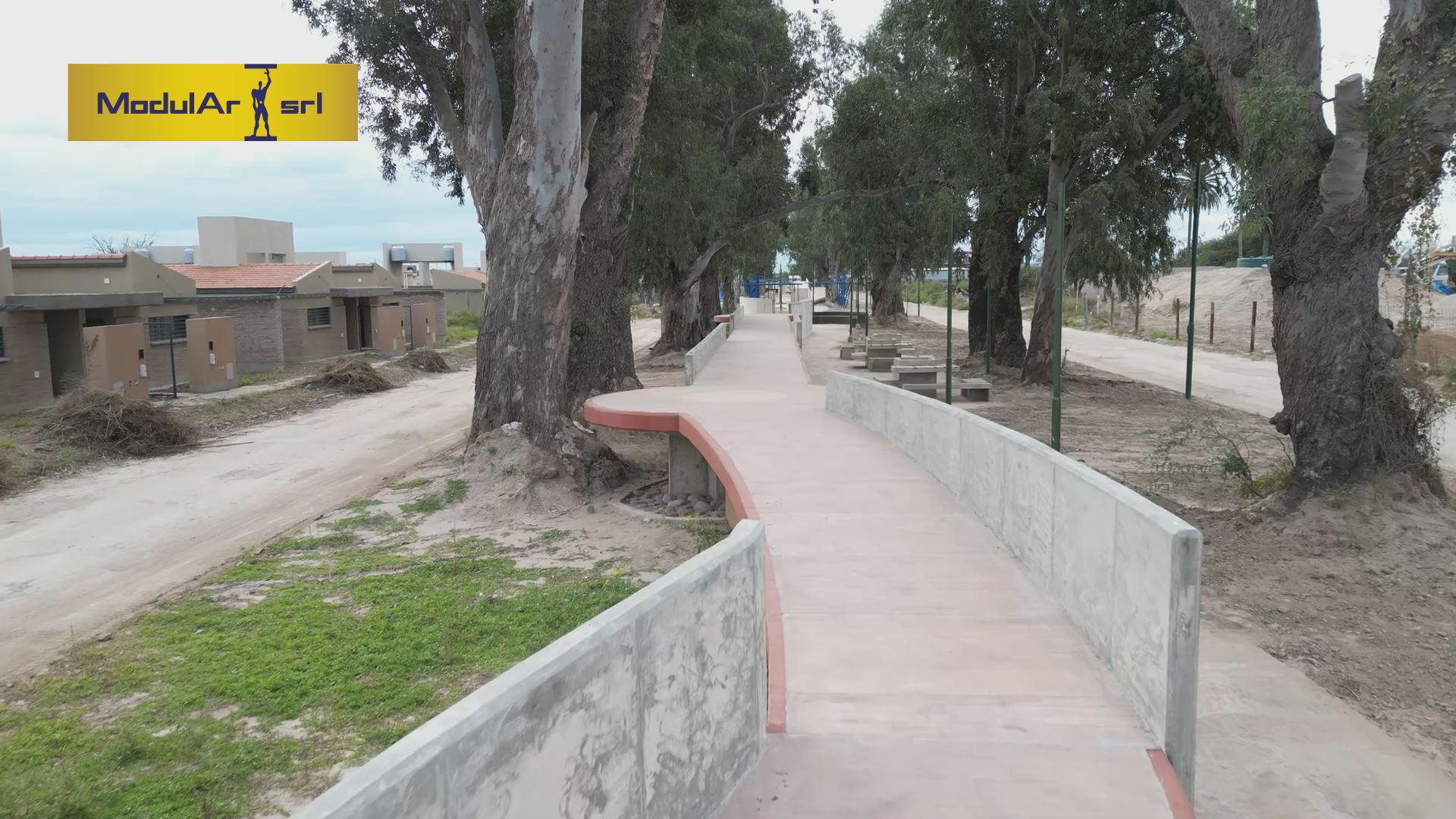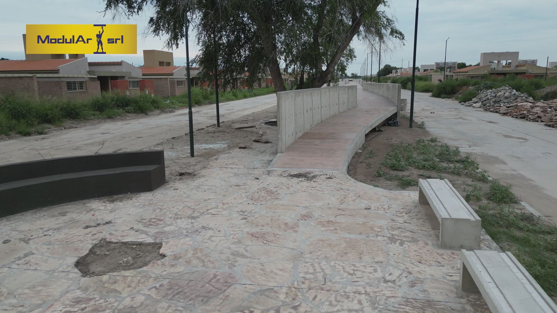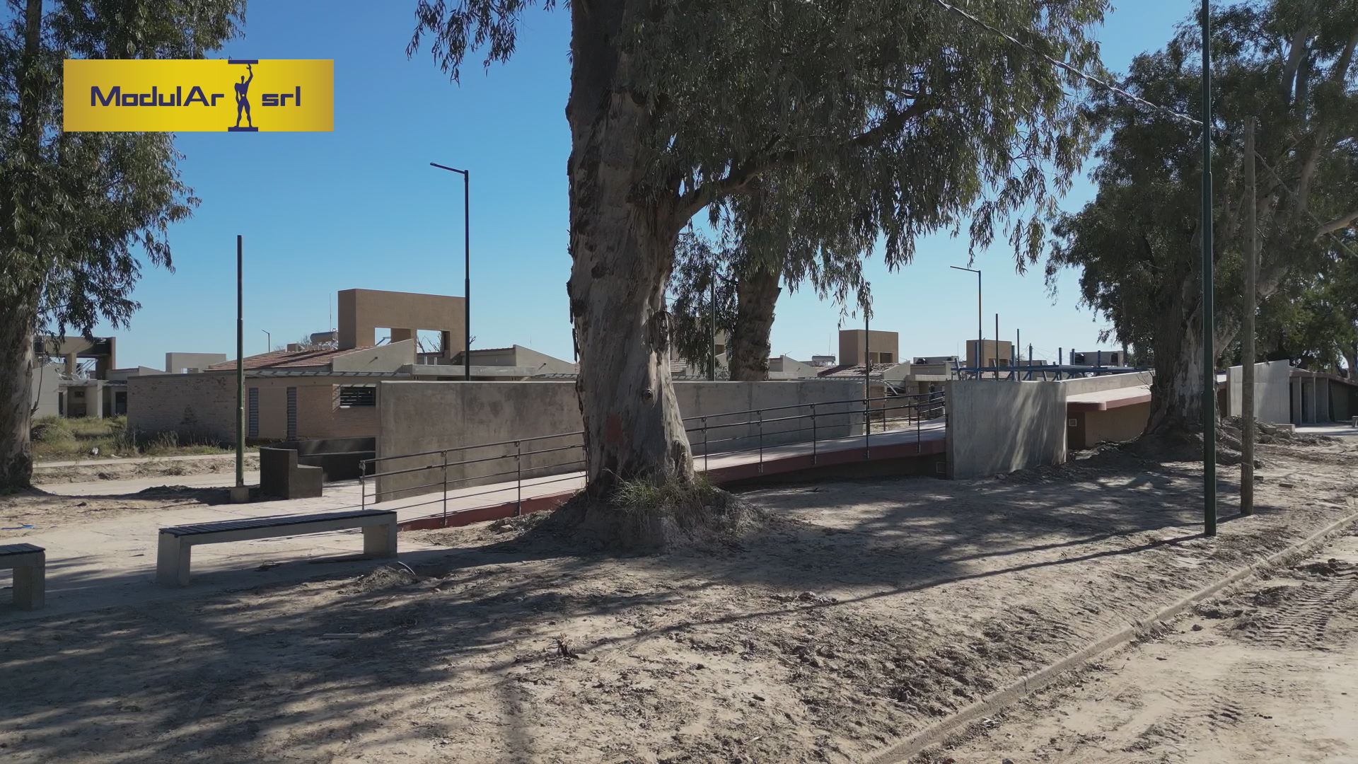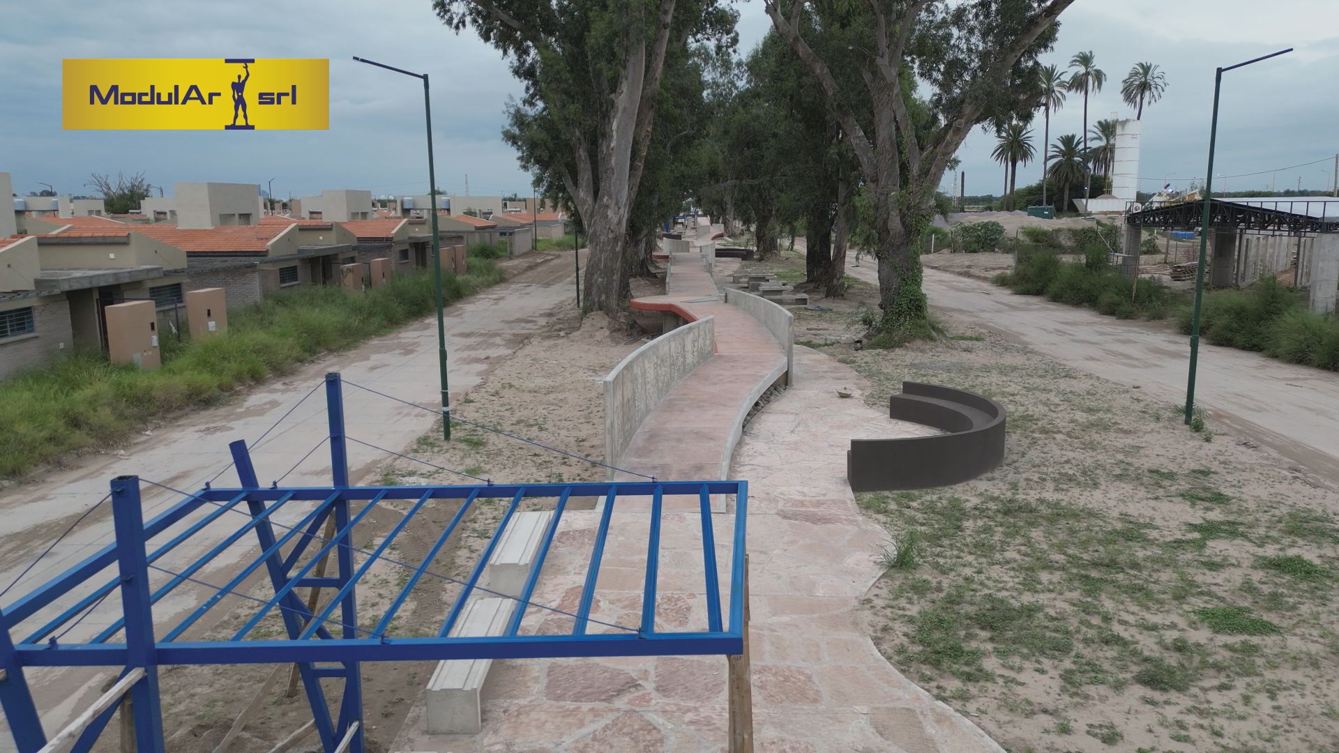 La obra además de generar un espacio de esparcimiento, salud y recreación para los futuros residentes del Barrio Parque del Rio I, cumple la función de espacio de conservación de los centenarios eucaliptus que se encontraban en la zona. Contará con pasarelas sobre nivel de Hormigón armado que permitirá un recorrido entre el arbolado, “Estaciones Recreativas” con juegos para niños, “Estaciones Culturales” con obras de arte, “Estaciones Saludables” con aparatos de gimnasia, “Estaciones de Esparcimiento”, caniles, bicicleteros, sistema de riego por aspersión, iluminación LED y calentadores solares.