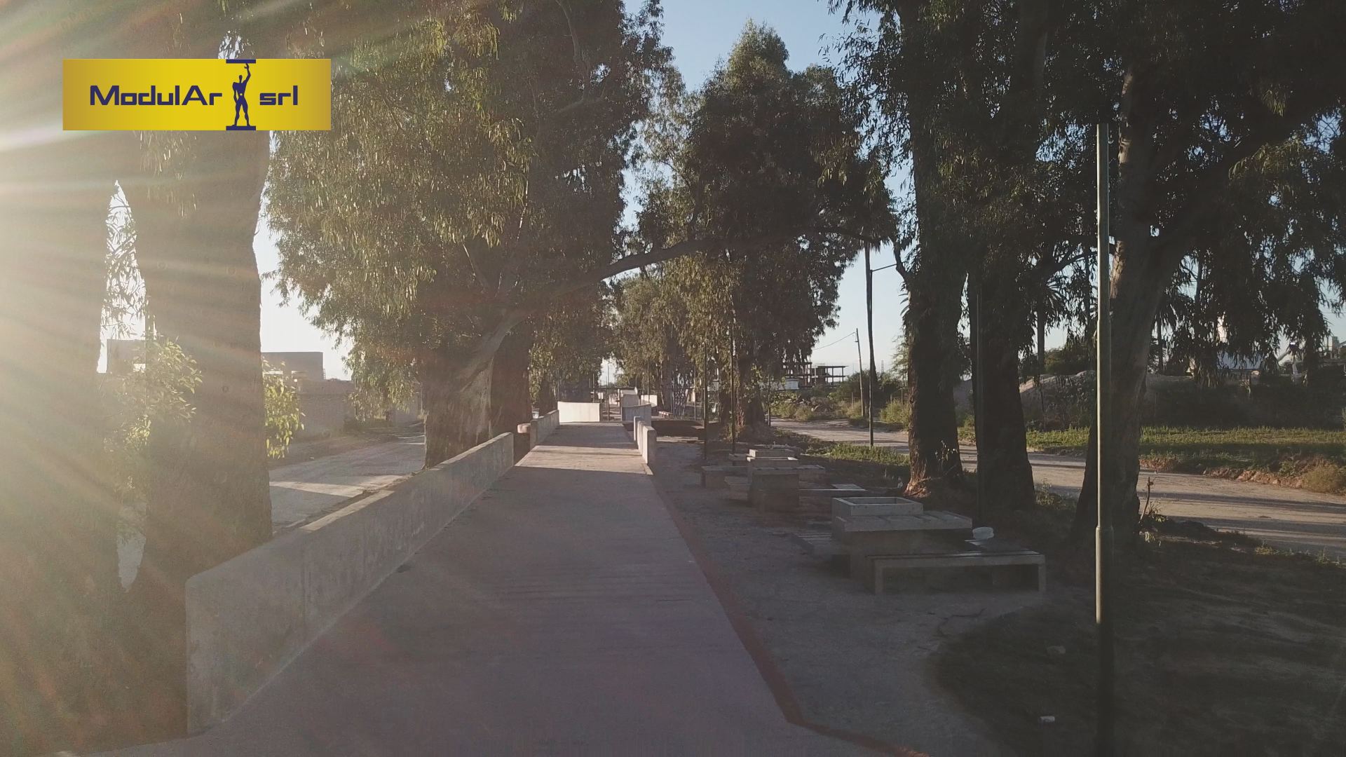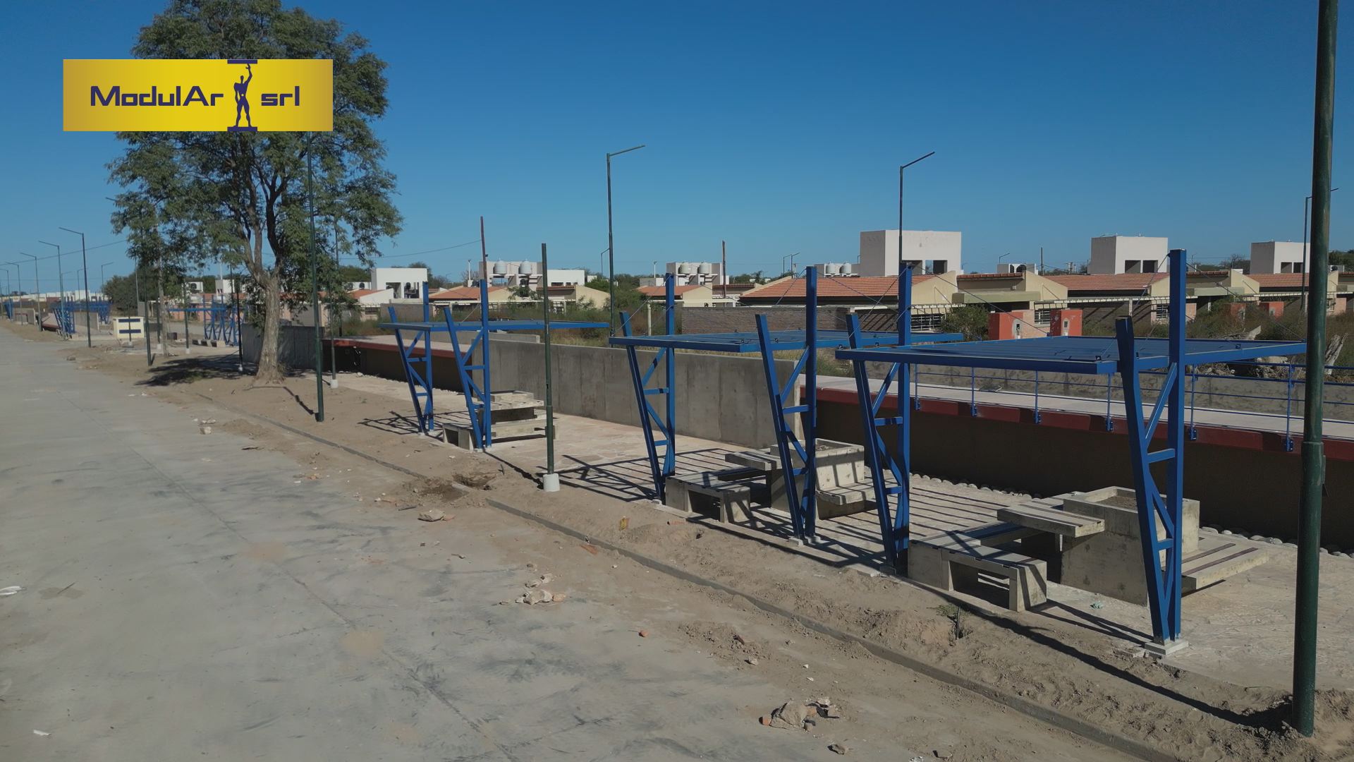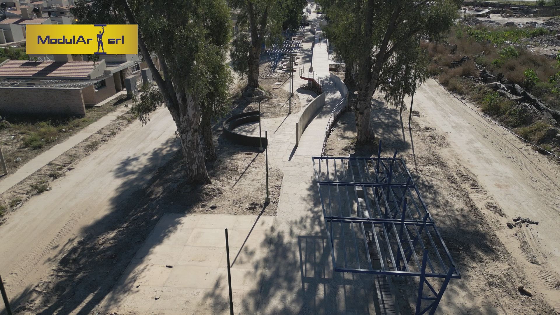 La obra además de generar un espacio de esparcimiento, salud y recreación para los futuros residentes del Barrio Parque del Rio I, cumple la función de espacio de conservación de los centenarios eucaliptus que se encontraban en la zona. Contará con pasarelas sobre nivel de Hormigón armado que permitirá un recorrido entre el arbolado, “Estaciones Recreativas” con juegos para niños, “Estaciones Culturales” con obras de arte, “Estaciones Saludables” con aparatos de gimnasia, “Estaciones de Esparcimiento”, caniles, bicicleteros, sistema de riego por aspersión, iluminación LED y calentadores solares.