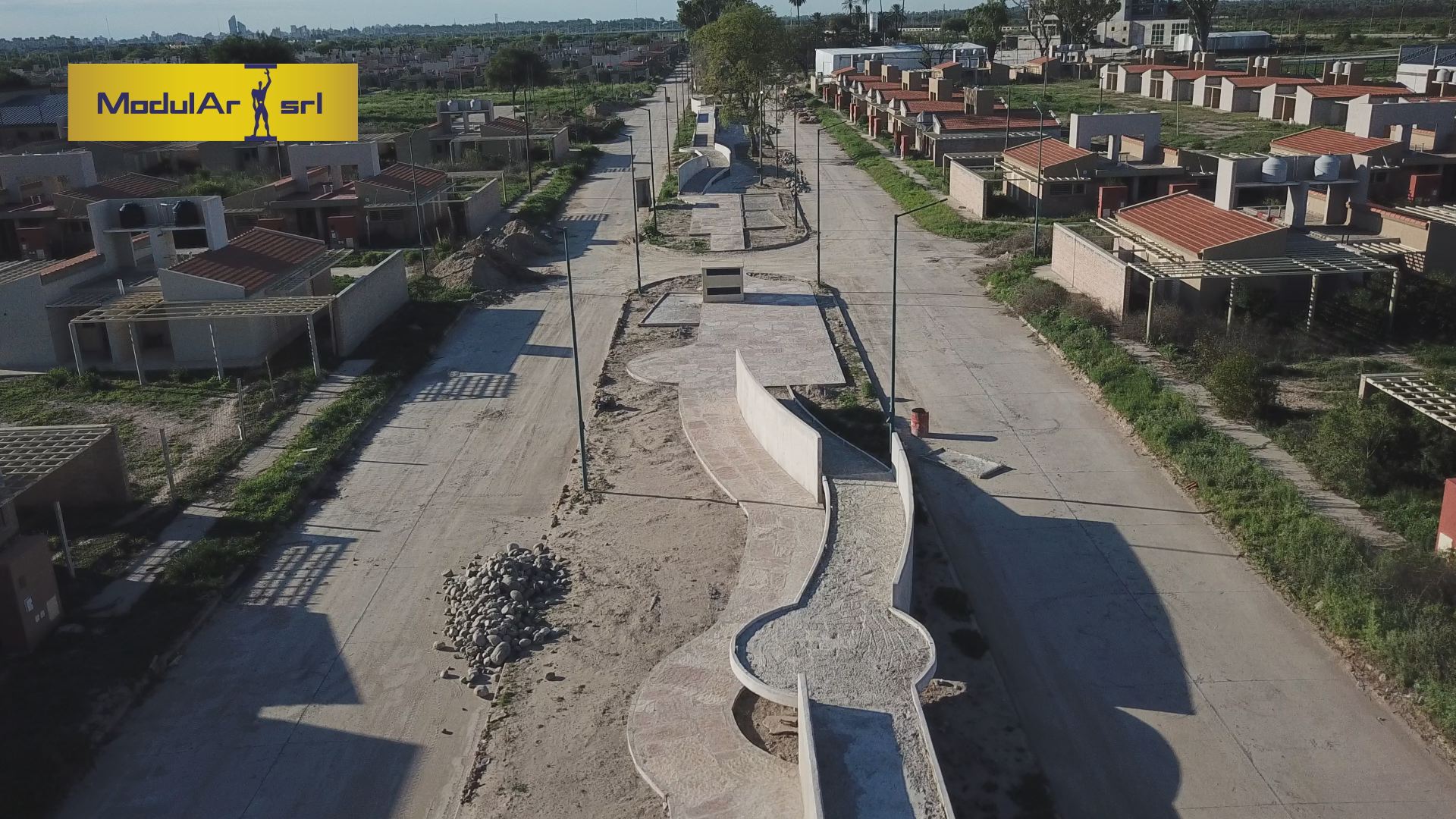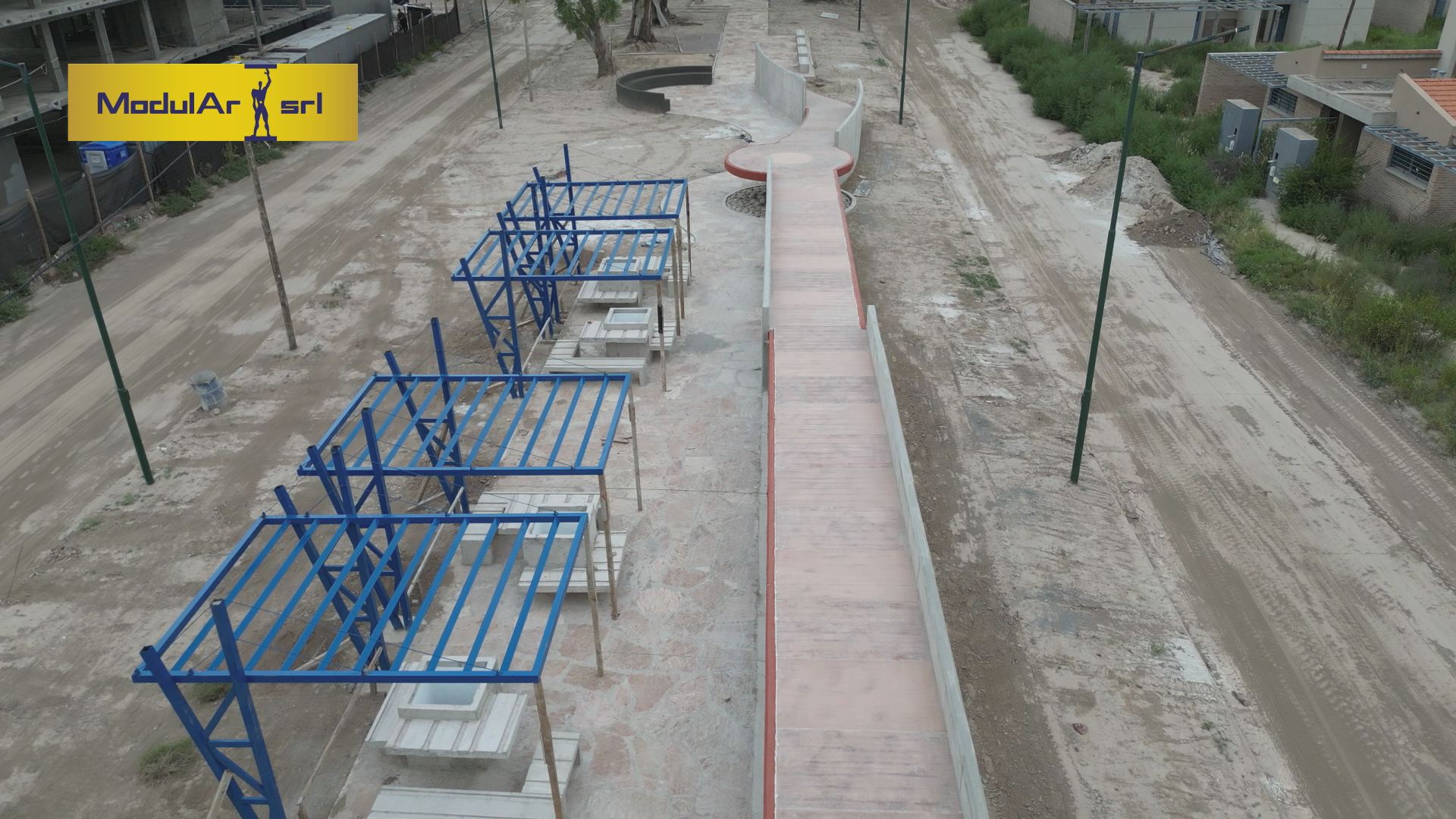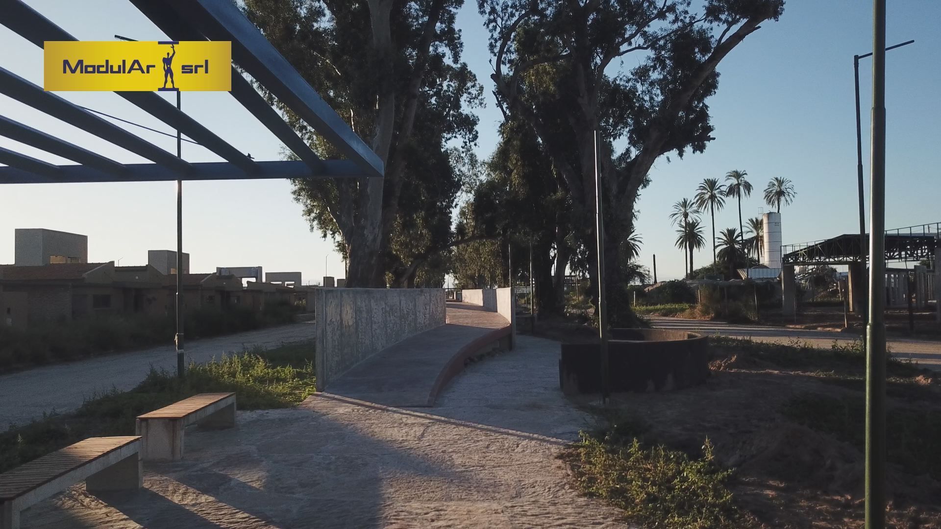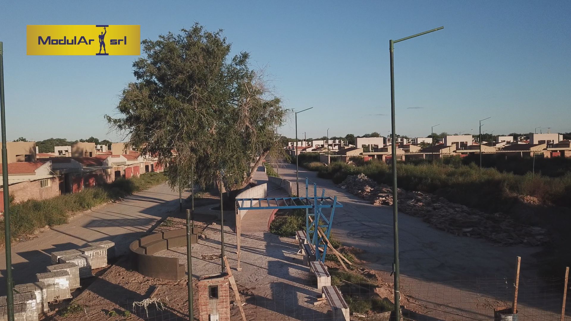 La obra además de generar un espacio de esparcimiento, salud y recreación para los futuros residentes del Barrio Parque del Rio I, cumple la función de espacio de conservación de los centenarios eucaliptus que se encontraban en la zona. Contará con pasarelas sobre nivel de Hormigón armado que permitirá un recorrido entre el arbolado, “Estaciones Recreativas” con juegos para niños, “Estaciones Culturales” con obras de arte, “Estaciones Saludables” con aparatos de gimnasia, “Estaciones de Esparcimiento”, caniles, bicicleteros, sistema de riego por aspersión, iluminación LED y calentadores solares.